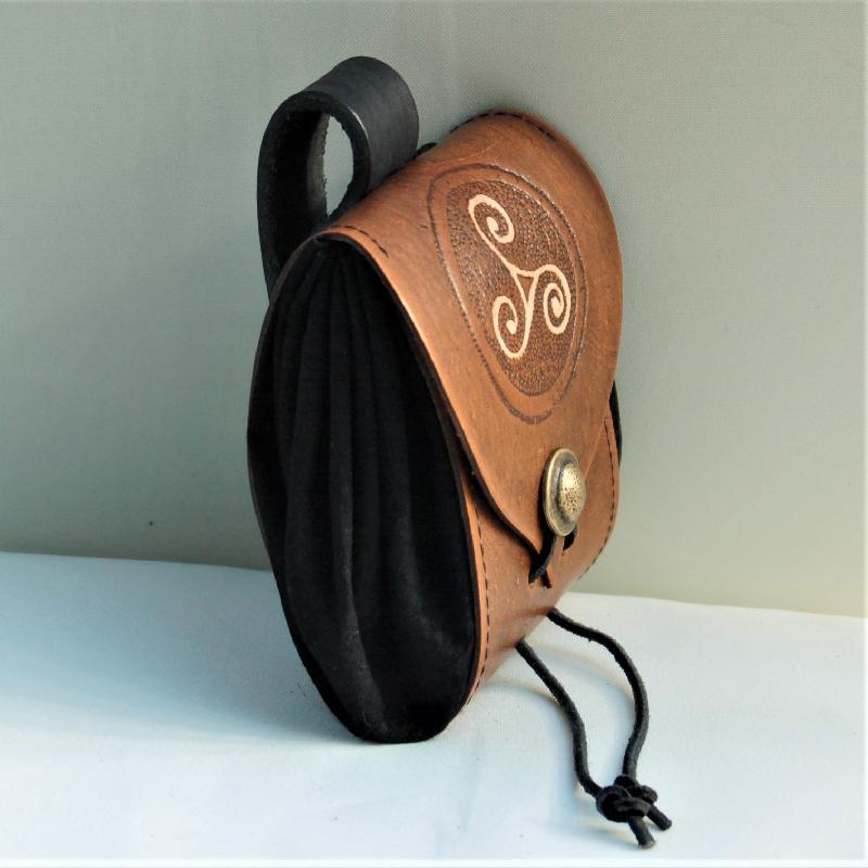 Made from vegetable tanned cowhide with embossed design "Triskele".